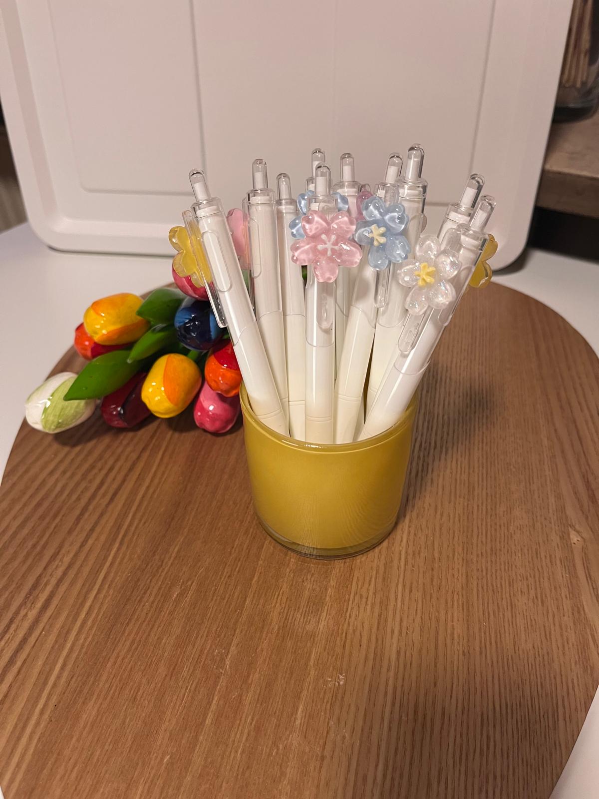 Unsere süßen Gelstifte mit transparentem Clip und zarten 3D-Blütenaufsätzen machen jeden Einkaufszettel, Planer oder To-Do-Moment ein kleines bisschen schöner.