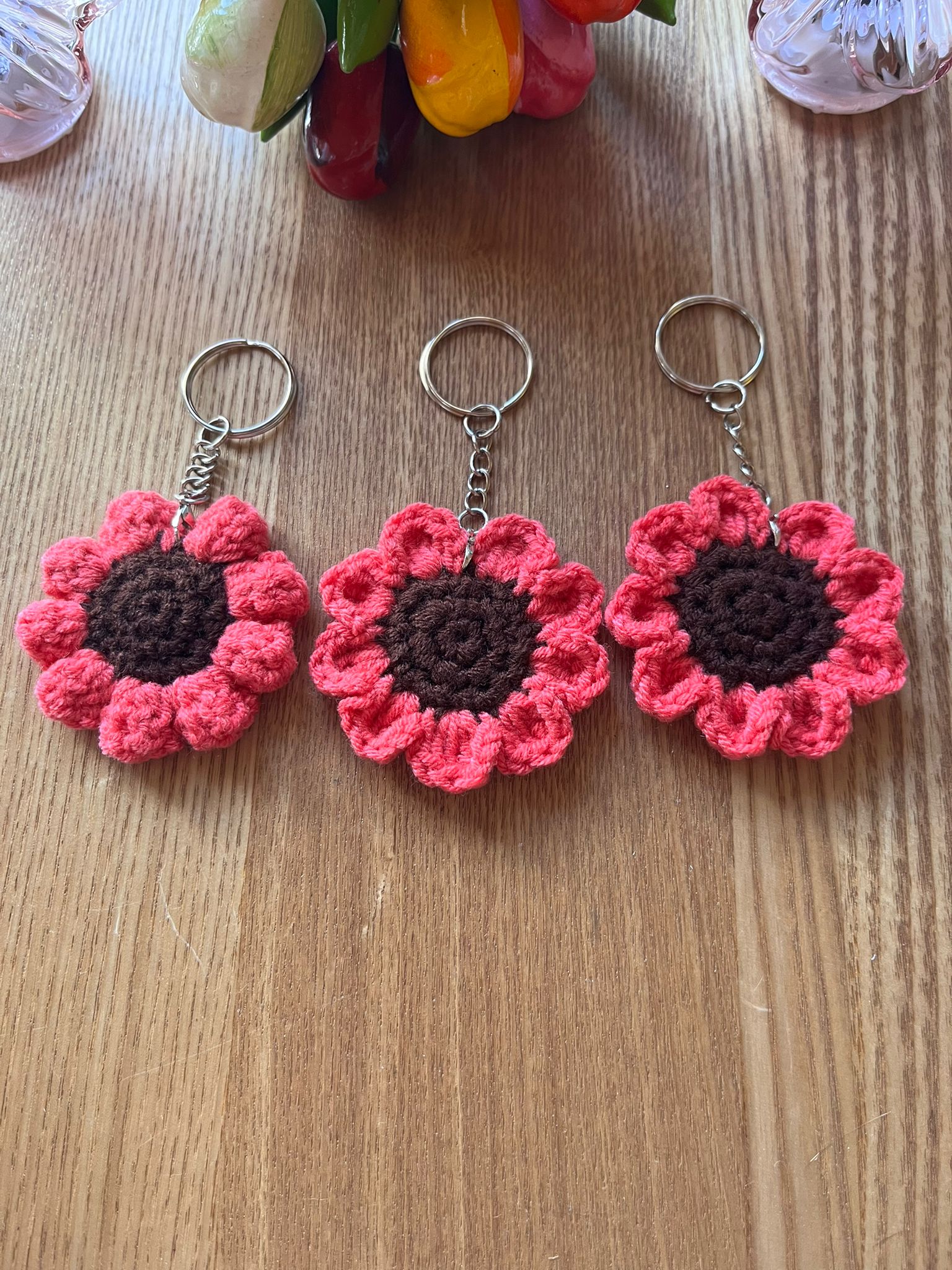 Jeder Anhänger wird von Hand gehäkelt und ist dadurch ein kleines Unikat.